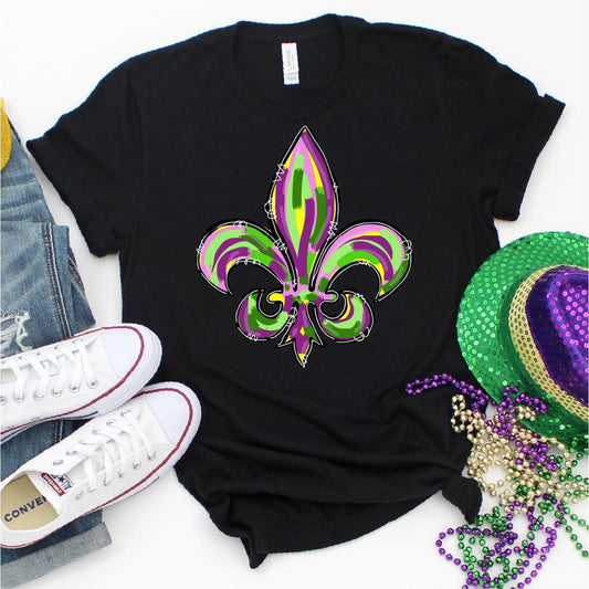 Hand Painted Flair De Lis, Mardi Gras DTF Transfer Print, T-Shirt Transfer