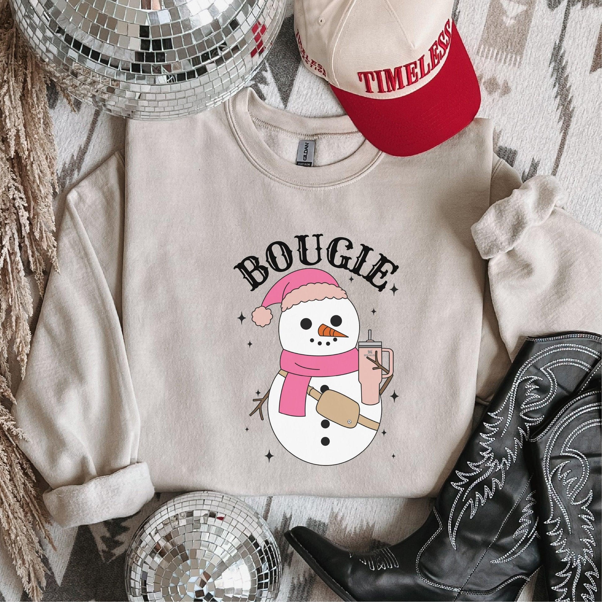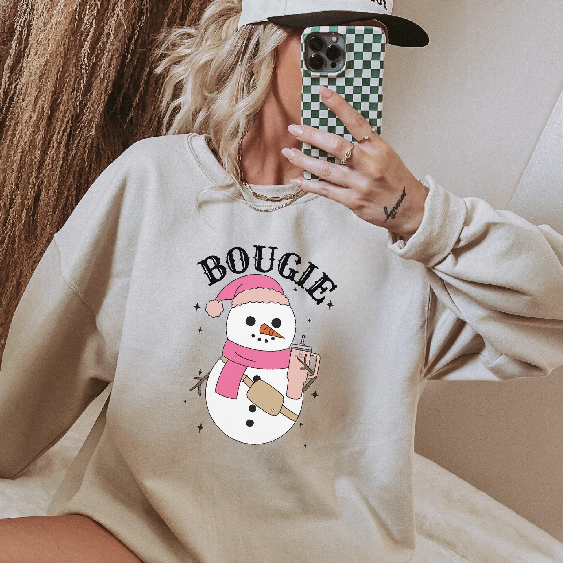 • ❄️ Playful “BOUGIE” Text: Bold lettering adds humor and personality to this winter-themed design.